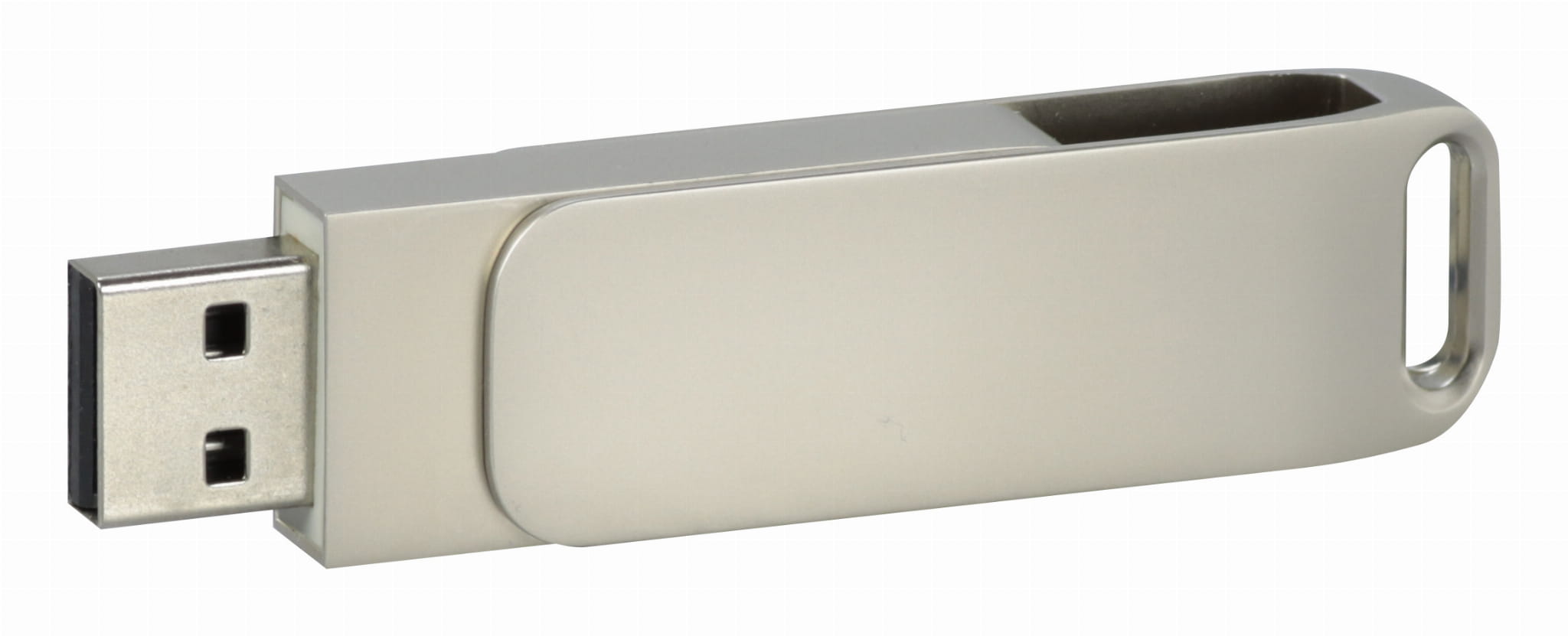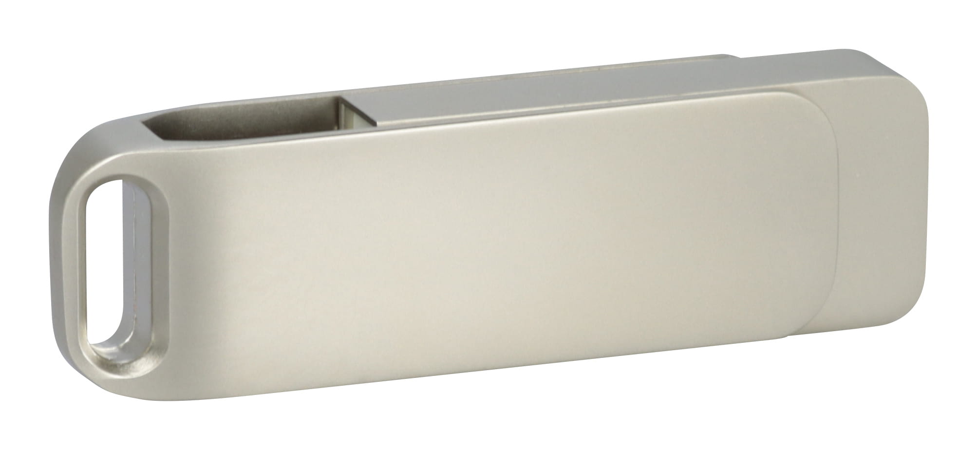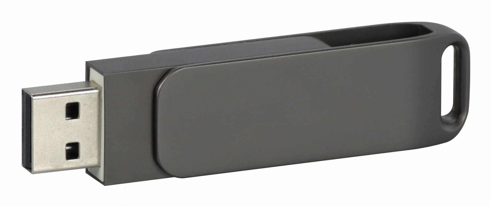 Klasyczna metalowa pamięć USB w kolorze srebrnym i grafitowym z elegancką satynową powierzchnią. Grawer jednostronny w cenie.