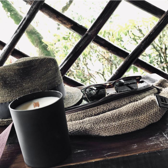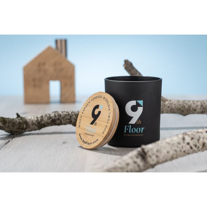 - Materiał wosk sojowy, szkło, bambus